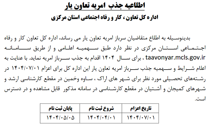 اطلاعیه جذب امریه تعاون یار ۱۱ تیر ۱۴۰۴ | ۱۲:۰۴ کد : ۵۲۷۴۸ اطلاعیه ارسال به دیگران نام شما ایمیل شما ایمیل دریافتکننده ارسال انصراف تعداد بازدید:۹۳۰ اطلاعیه جذب امریه تعاون یار