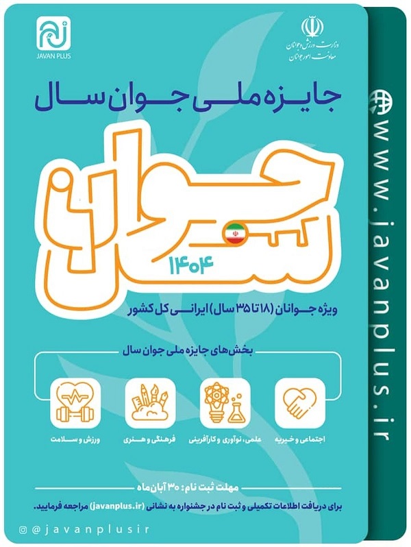 جایزه ملی جوان ۱۷ آبان ۱۴۰۴ | ۱۳:۲۴ کد : ۵۶۱۱۵ اطلاعیه ارسال به دیگران نام شما ایمیل شما ایمیل دریافتکننده ارسال انصراف تعداد بازدید:۹۳۲ جایزه ملی جوان سال ۱۴۰۴ فراخوان شرکت در جایزه ملی جوان سال ۱۴۰۴ منتشر شد.