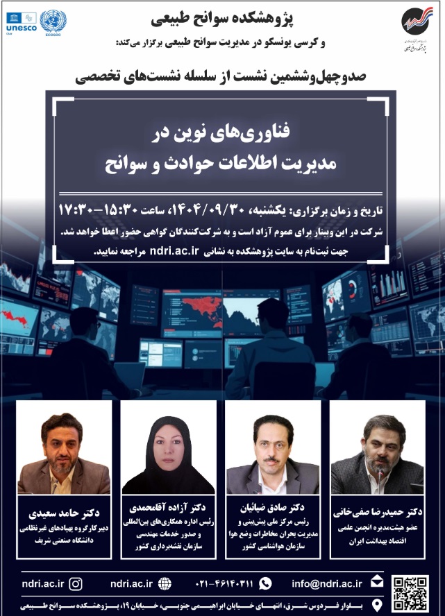 نشست فن آوری نوین در مدیریت اطلاعات حوادث وسوانح ۳۰ آذر ۱۴۰۴ | ۱۲:۰۴ کد : ۵۷۱۴۹ اطلاعیه ارسال به دیگران نام شما ایمیل شما ایمیل دریافتکننده ارسال انصراف تعداد بازدید:۱۷۷۵ دعوتنامه نشست فن آوری نوین در مدیریت اطلاعات حوادث وسوانح