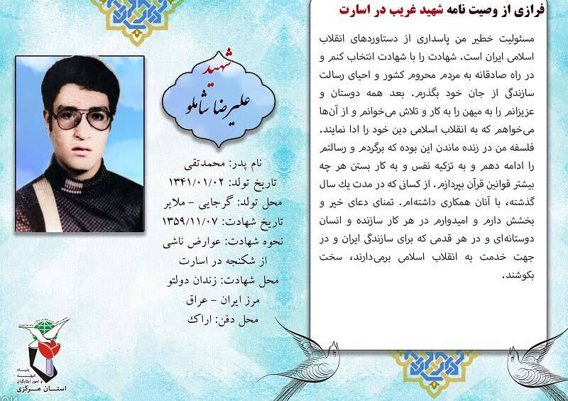 فرازی از وصیت نامه شهدا ۰۵ بهمن ۱۴۰۴ | ۰۹:۴۵ کد : ۵۷۶۸۳ اطلاعیه ارسال به دیگران نام شما ایمیل شما ایمیل دریافتکننده ارسال انصراف تعداد بازدید:۵۳۱ فرازی از وصیت نامه شهدا فرازی از وصیت نامه شهید بزرگوار علیرضا شاملو :